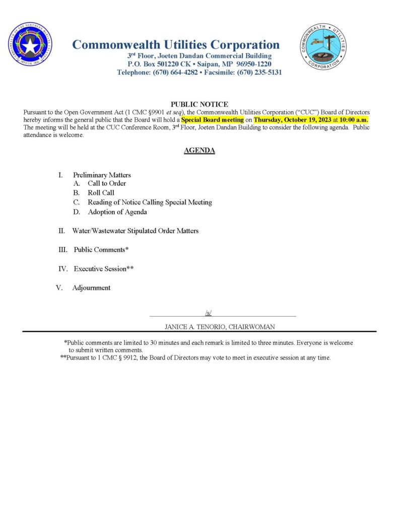 2026-04-23 Public Advisory re CUC’s Updated Water Filling Stations