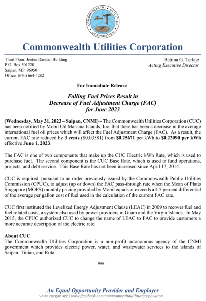 Falling Fuel Prices Result in Decrease of Fuel Adjustment Charge (FAC) for June 2023