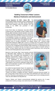 Public Advisories 2025-09-23 Press Release re Building Tomorrow’s Water Leaders-Stories of Dedication and Achievement Read More September 23, 2025