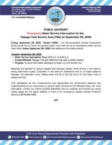 Public Advisories 2025-09-24 Public Advisory re Scheduled Water Service Interruption for the Island of Tinian on September 27, 2025 Read More September 25, 2025