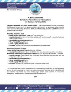 Public Advisories 2025-09-29 Public Advisory re Scheduled Power Service Interruptions on Oct. 2 & 8, 2025 Read More September 29, 2025
