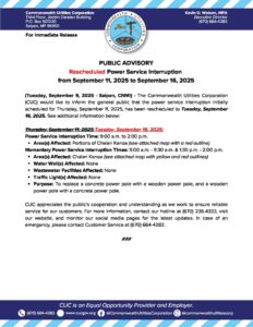 Public Advisories 2025-09-09 Public Advisory re Rescheduled Power Service Interruption from September 11 to September 16, 2025 Read More September 9, 2025