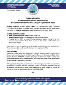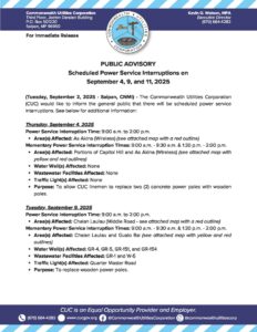 Public Advisories 2025-09-02 Public Advisory re Scheduled Power Service Interruptions on Sept. 4-11, 2025 Read More September 2, 2025
