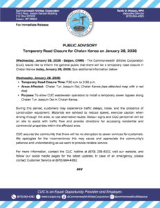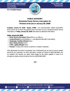 Public Advisories 2026-01-27 Public Advisory re Emergency Water Service Interruption for Kagman III Today, January 27, 2026 Read More January 27, 2026