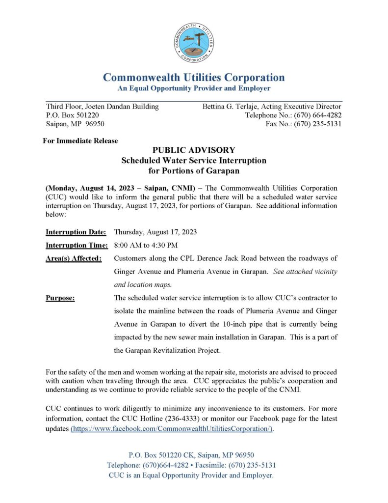 Home » News and Events » Public Advisories » 2023-AUG-14, Public Advisory re Scheduled Water Service Interruption for August 17, 2023