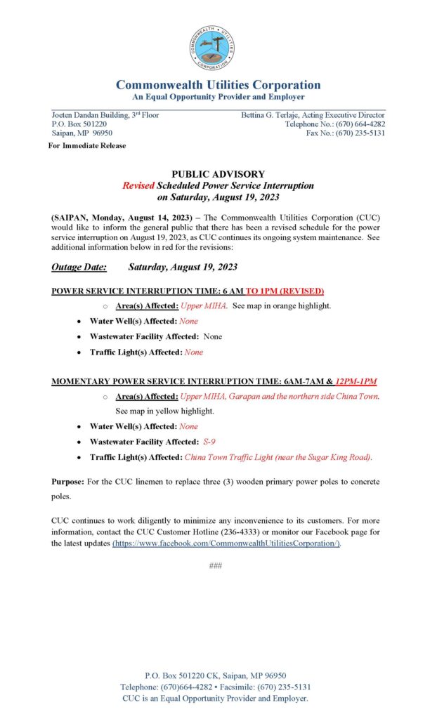 Home » News and Events » Public Advisories » 2023-AUG-14, Revised Public Advisory re Scheduled Power Service Interruption on August 19, 2023