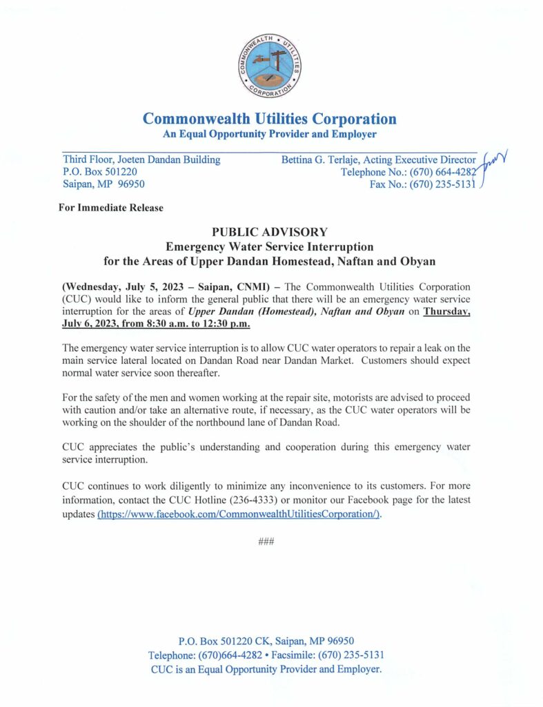 Home » News and Events » Public Advisories » 2023-JUL-05, Public Advisory re Emergency Water Service Interruption on July 6, 2023