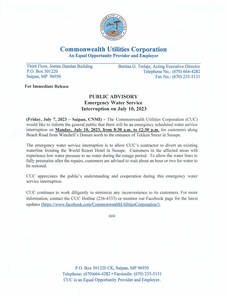 Home » News and Events » Public Advisories » 2023-JUL-07, Public Advisory re Emergency Scheduled Water Service Interruption on July 10, 2023
