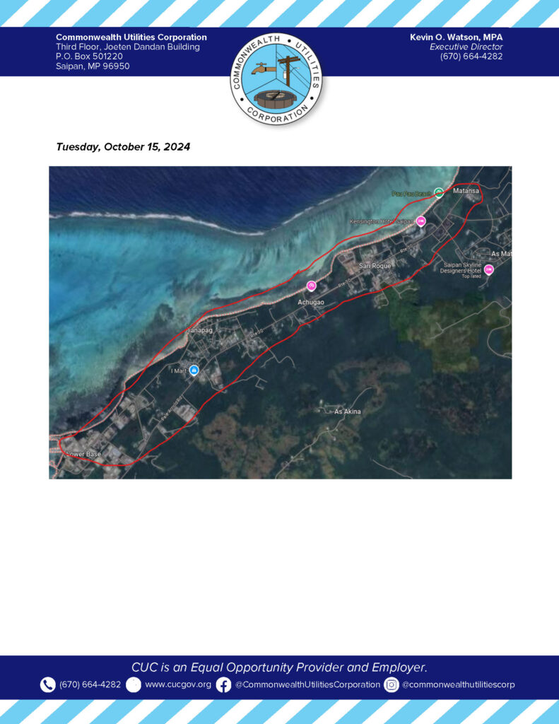 Home » News and Events » Public Advisories » 2024-10-11 Public Advisory re Scheduled Water Service Interruption for Tanapag, Achugao, and San Roque on October 15, 2024