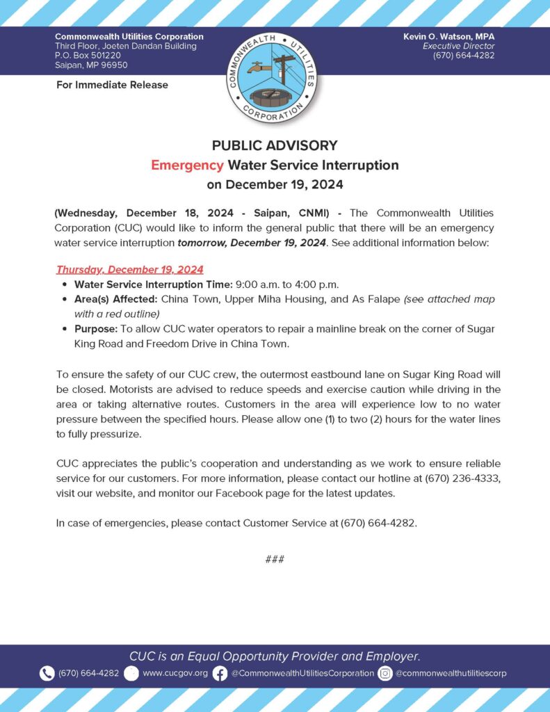 Home » News and Events » Public Advisories » 2024-12-18 Public Advisory re Emergency Water Service on December 19, 2024