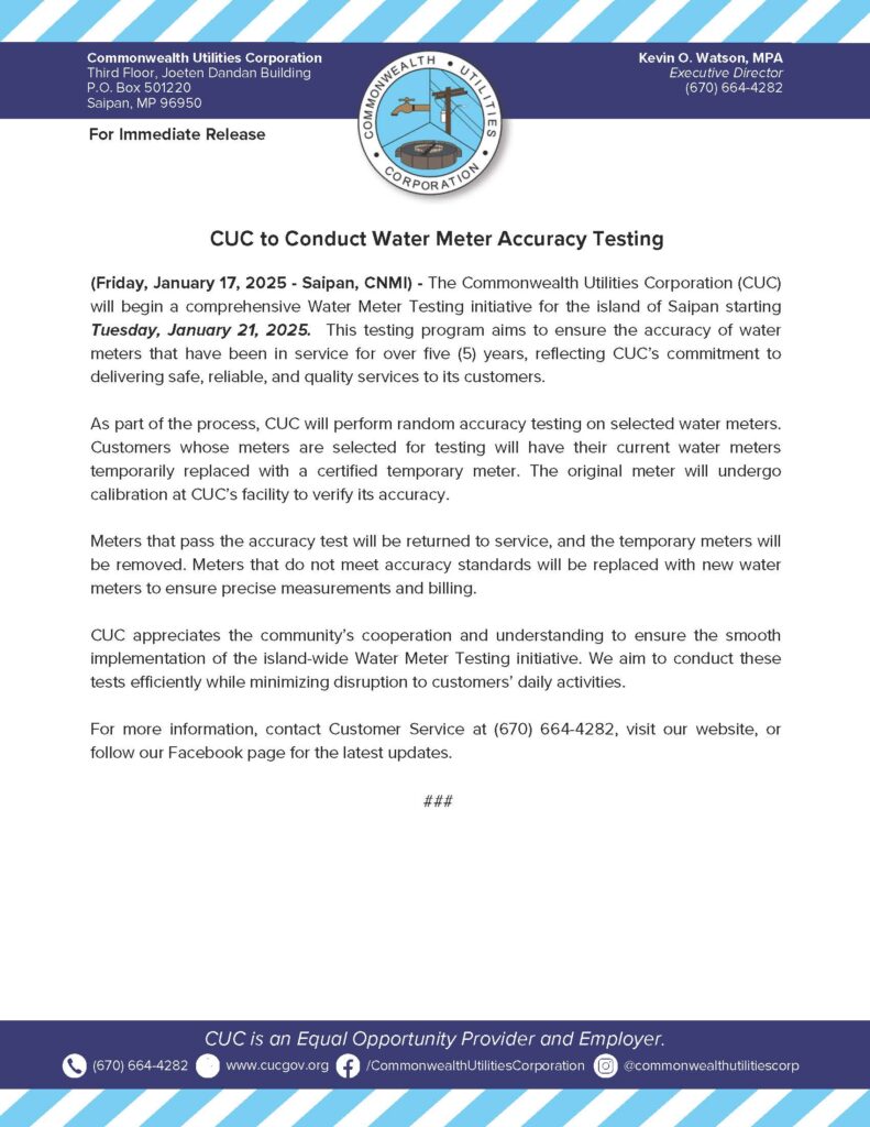 Home » News and Events » Public Advisories » 2025-01-17 CUC to Conduct Water Meter Accuracy Testing