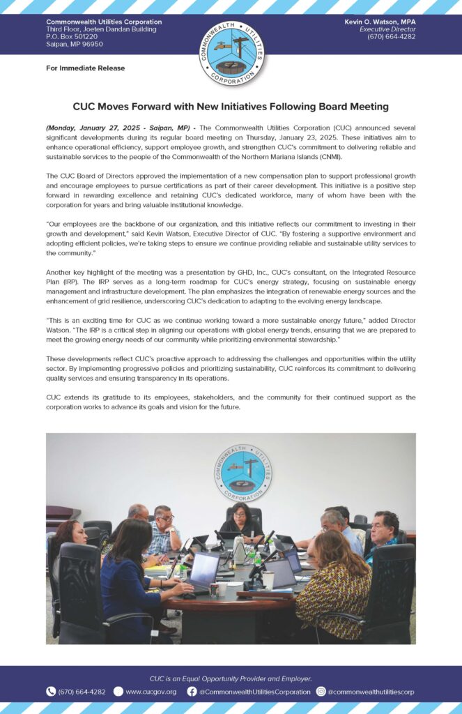 Home » News and Events » Public Advisories » 2025-01-27 CUC Moves Forward with New Initiatives Following Board Meeting