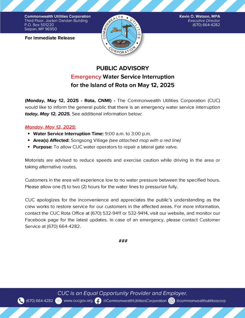 2025-05-12 Public Advisory re Emergency Water Service Interruption for the Island of Rota Today, May 12, 2025