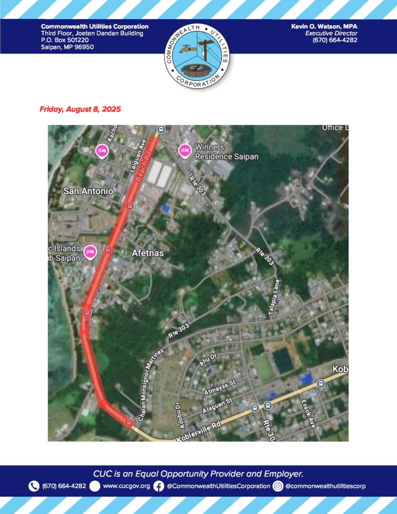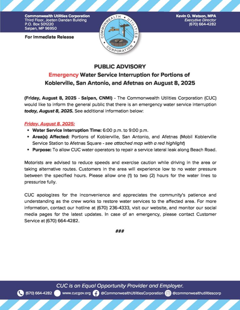 2025-08-08 Public Advisory re Emergency Water Service Interruption for Portions of Koblerville, San Antonio, and Afetnas on August 8, 2025