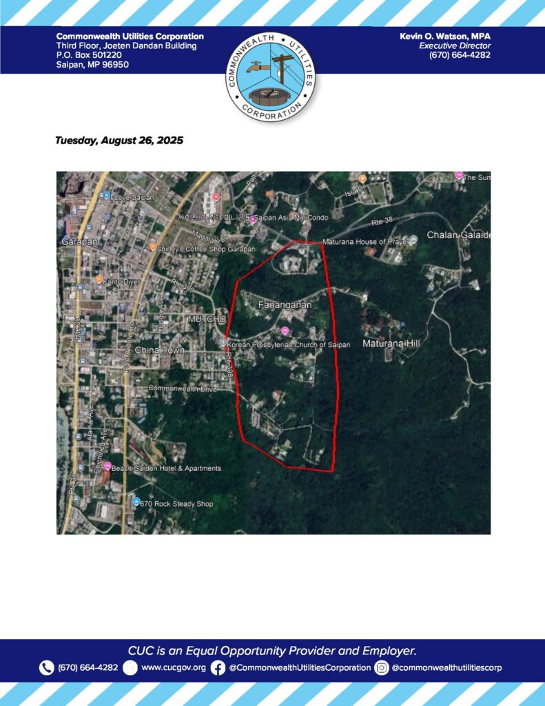 Home » News and Events » Public Advisories » 2025-08-22 Public Advisory re Scheduled Water Service Interruption for Portions of China Town and As Falipe on August 26, 2025