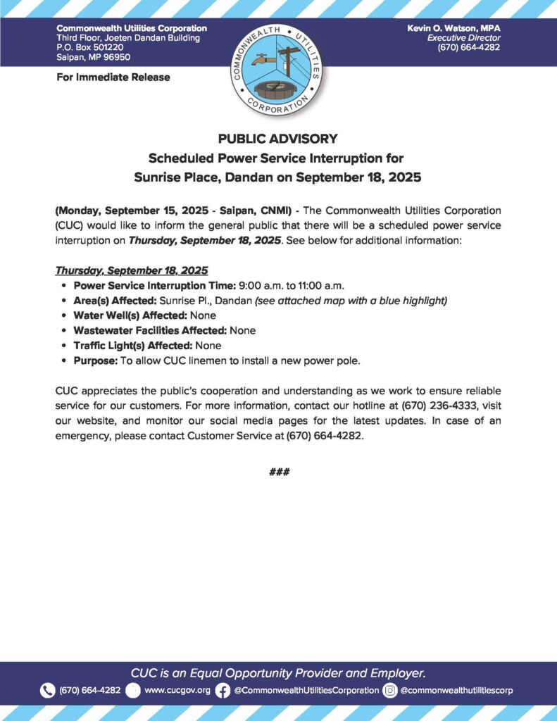 2025-09-15 Public Advisory re Scheduled Power Service Interruption for Sunrise Pl., Dandan on September 18, 2025