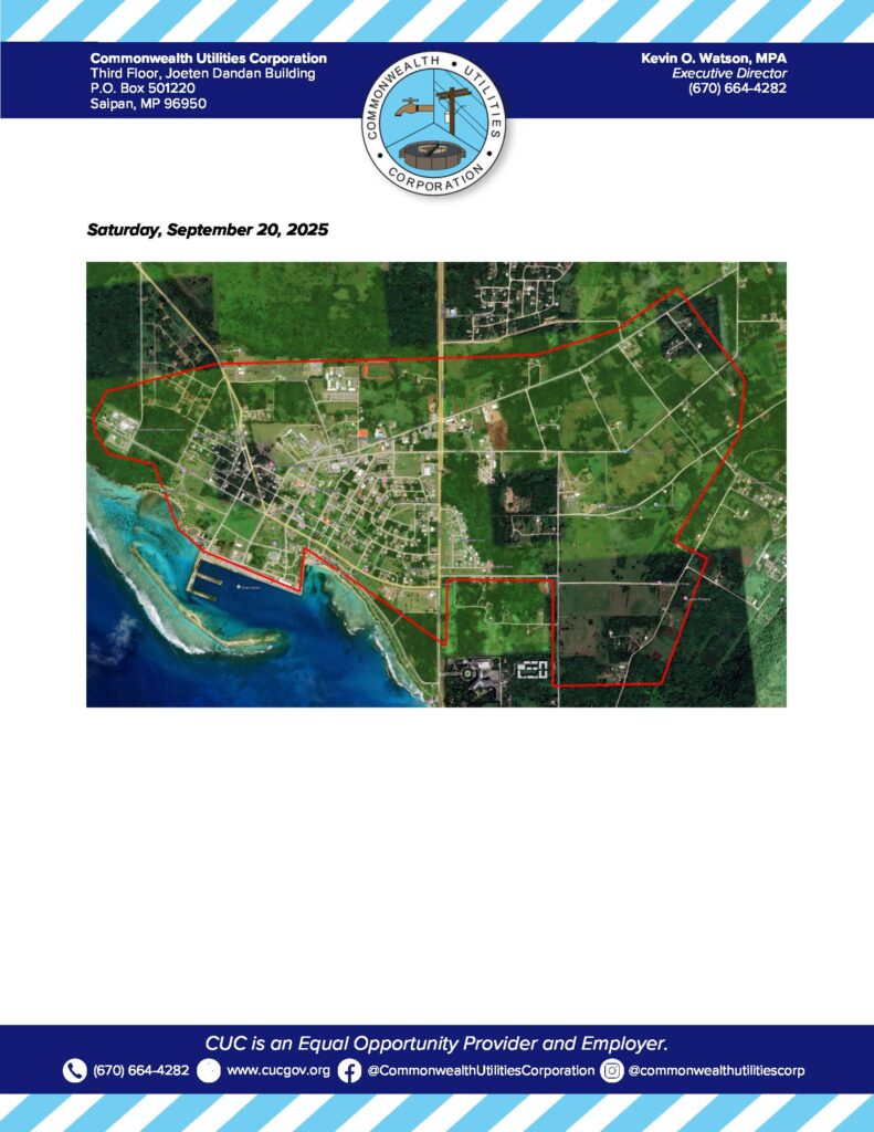 Home » News and Events » Public Advisories » 2025-09-17 Public Advisory re Scheduled Water Service Interruption for the Island of Tinian on September 20, 2025