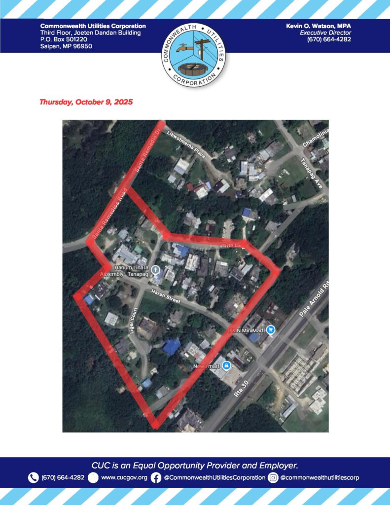 Home » News and Events » Public Advisories » 2025-10-09 Public Advisory re Emergency Water Service Interruption for Portions of Tanapag Today, October 9, 2025