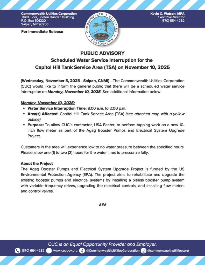 2025-11-05 Public Advisory re Scheduled Water Service Interruption for the Capitol Hill TSA on November 10, 2025