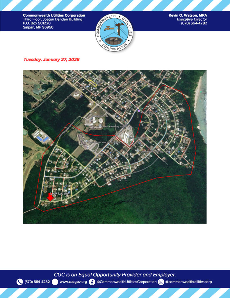 Home » News and Events » Public Advisories » 2026-01-27 Public Advisory re Emergency Water Service Interruption for Kagman III Today, January 27, 2026