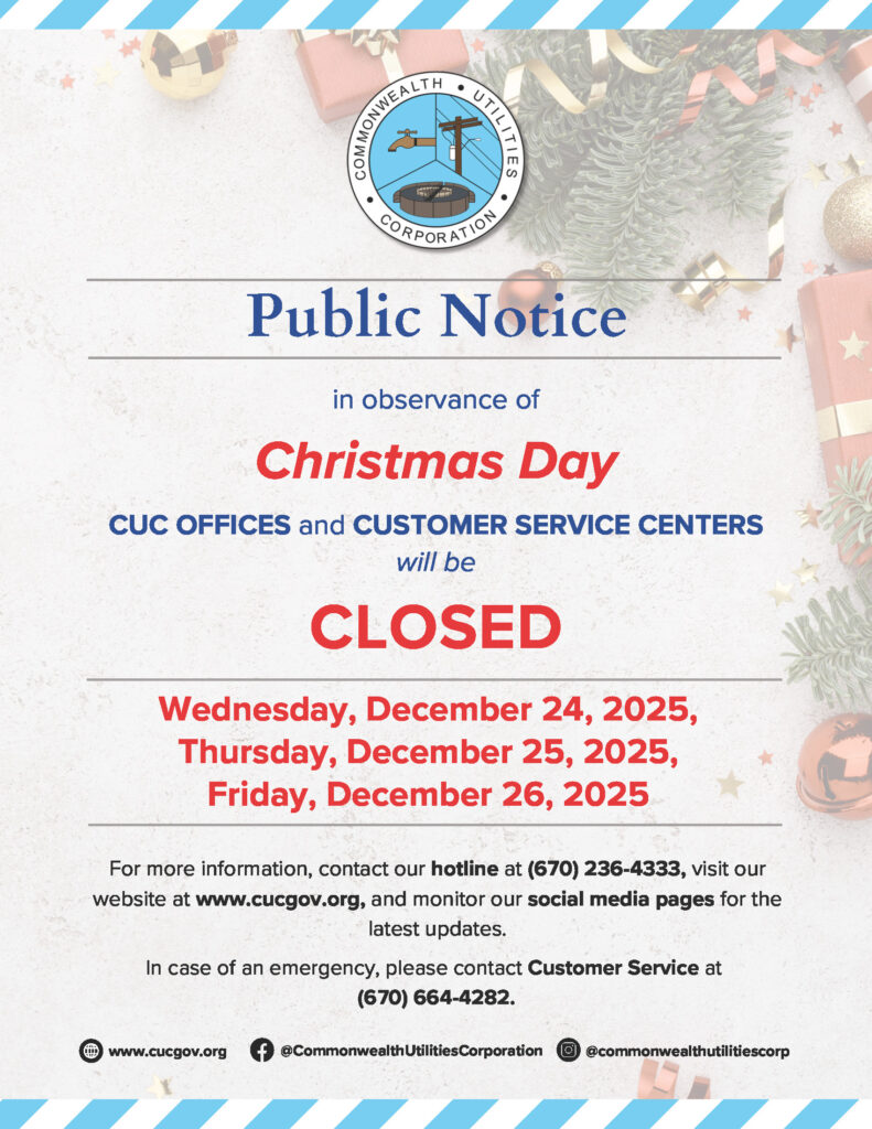 Home » News and Events » Public Advisories » CUC Office Closure Revised – 2025 Christmas Day Holiday