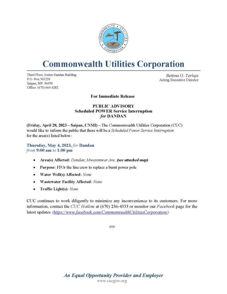 Home » News and Events » Public Advisories » For MAY 4, Public Advisory re Scheduled POWER Service Interruption for Dandan