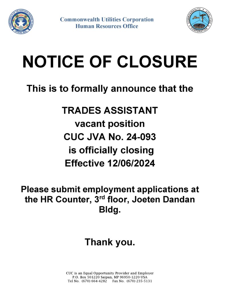NOTICE – TRADES ASSISTANT 12.06.2024