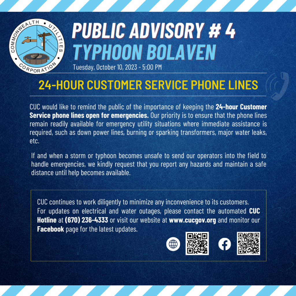 Home » News and Events » Public Advisories » Public Advisory 4 re 24 Hour Customer Service Phone Lines